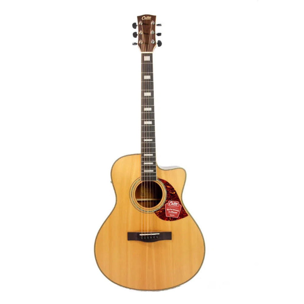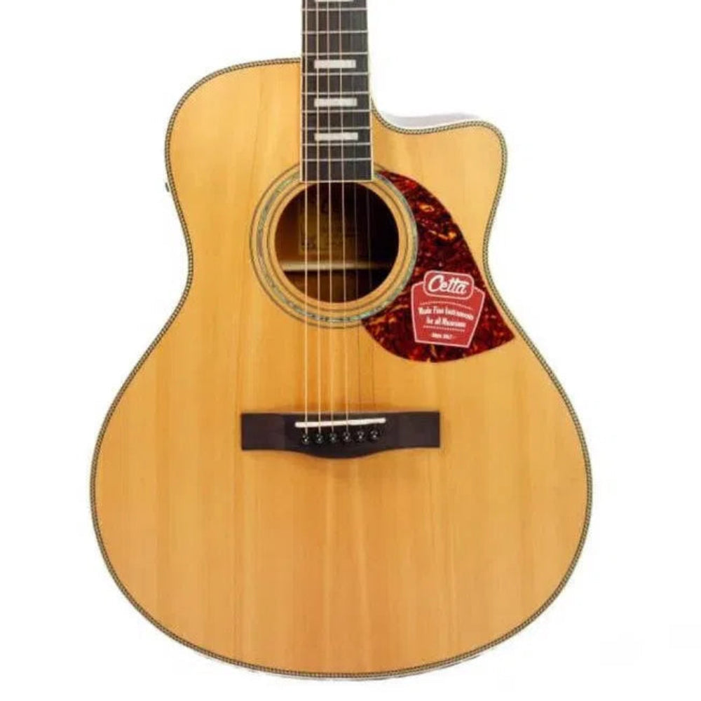 Cetta LV33SCE – NAT adalah gitar akustik elektrik yang dirancang khusus buat kamu yang butuh kualitas suara serius, kenyamanan bermain, dan fleksibilitas tinggi. Mengusung ukuran 41” dengan body Grand Auditorium (GA) Cutaway, gitar ini menawarkan keseimbangan ideal antara power dan detail. Bentuk body-nya nyaman dipeluk, sementara cutaway memudahkan akses ke fret-fret atas untuk solo atau permainan yang lebih ekspresif.