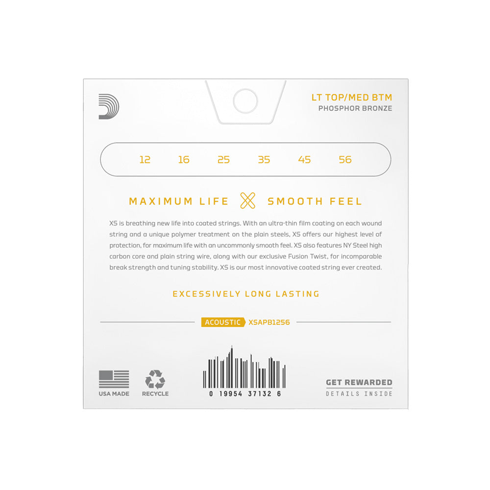 Born from our greatest breakthrough in string innovation, XS Phosphor Bronze strings have the longest life of any D’Addario acoustic guitar string. The XS coating gives our warm, balanced phosphor bronze strings maximum life, with an uncommonly smooth feel. Made with a NY Steel core, phosphor bronze wrap wire and Fusion Twist technology, XS coated acoustic guitar strings have incomparable break strength and tuning stability, in addition to their dramatically increased lifespan. 12-53 Light strings are our most popular acoustic gauge, providing a nice balance of playability and tone.