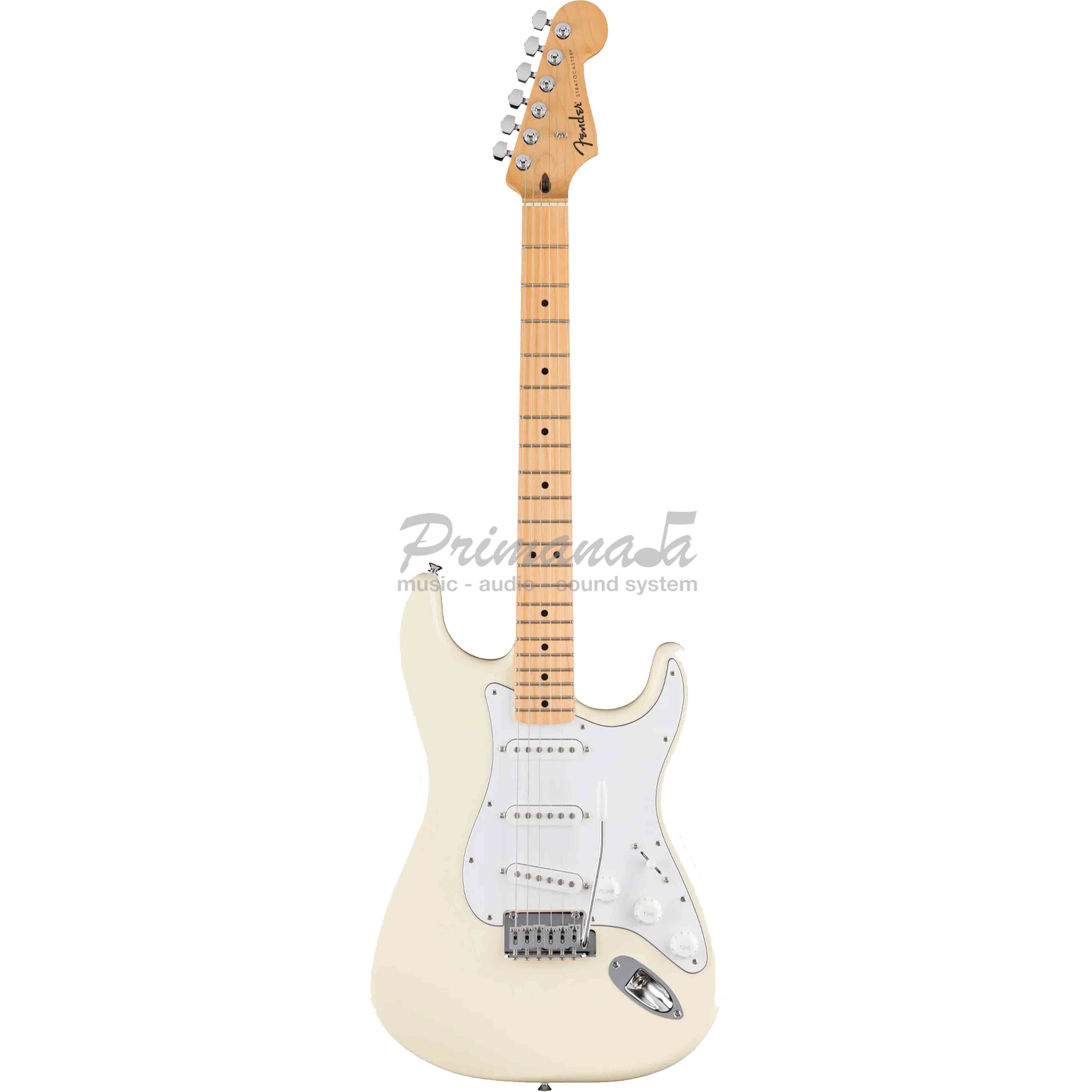 Fender Standard Stratocaster dengan finishing Olympic White dan fingerboard maple adalah gitar elektrik klasik yang telah melegenda selama puluhan tahun. Desain khas Stratocaster—dengan tiga pickup single-coil dan bentuk body yang ergonomis—telah menjadi pilihan utama musisi di seluruh dunia dari berbagai genre, mulai dari rock, blues, funk, hingga pop. Kini hadir dalam tampilan Olympic White yang bersih dan elegan, gitar ini tidak hanya terdengar hebat tetapi juga terlihat luar biasa di atas panggung.
