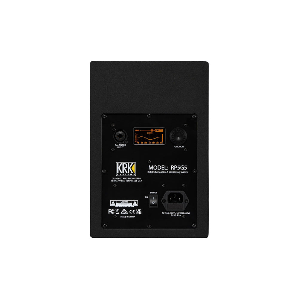 Keunggulan utama KRK RP5 G5 terletak pada LCD EQ visual dengan DSP onboard, memungkinkan pengguna menyesuaikan karakter suara sesuai akustik ruangan. Tersedia berbagai preset EQ untuk penempatan di dekat dinding, meja, atau free-standing. Monitor ini juga dilengkapi input combo XLR / TRS balanced, memastikan koneksi stabil dan minim noise dengan audio interface atau mixer profesional.