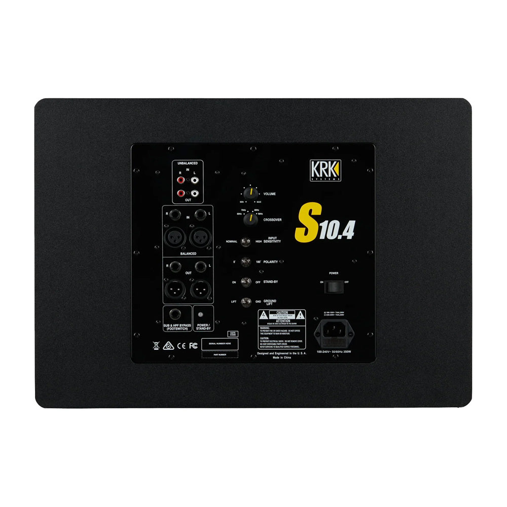 KRK S10.4 adalah active studio subwoofer 10 inch yang dirancang khusus untuk melengkapi monitor studio KRK maupun speaker monitor lainnya. Subwoofer ini sangat ideal untuk home studio, recording studio, mixing, mastering, content creator, produser musik, hingga studio podcast yang membutuhkan respon bass akurat, dalam, dan terkontrol.