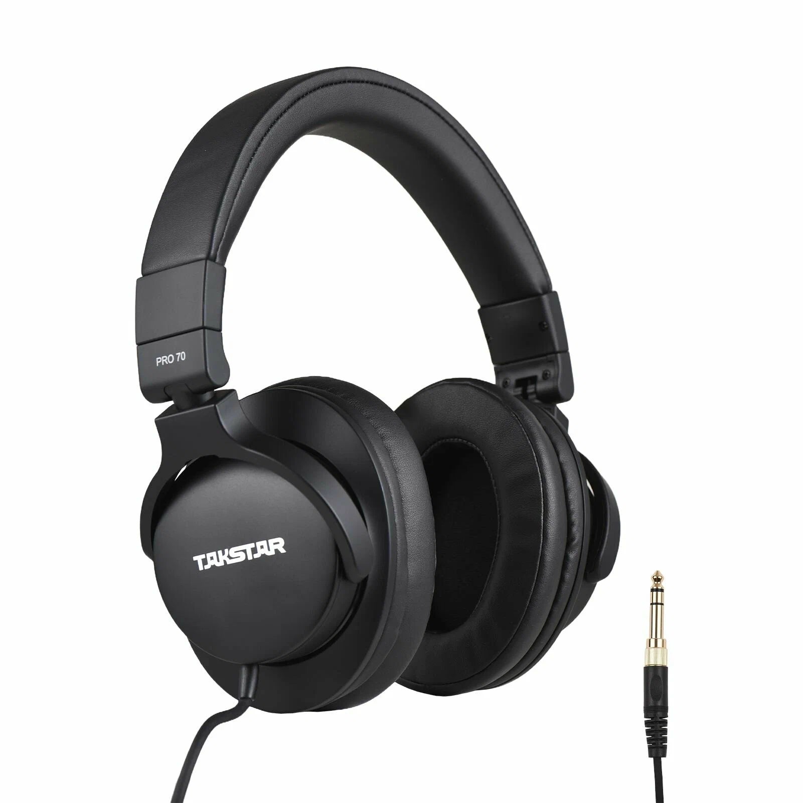 Dari segi kenyamanan, Takstar Pro 70 hadir dengan earcup besar dan pad empuk berbahan kulit sintetis premium, serta headband adjustable yang mengikuti bentuk kepala pengguna. Kabelnya panjang dan berkualitas tinggi, dilengkapi dengan konektor 3.5mm dan adapter 6.3mm agar kompatibel dengan berbagai perangkat. Semua fitur ini dikemas dalam desain elegan berwarna hitam matte yang terlihat profesional dan tangguh.
