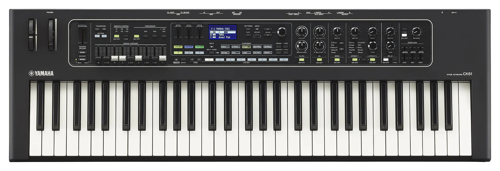 Yamaha CK61 adalah keyboard stage terbaru dari Yamaha yang menggabungkan sintesis modern dan organ klasik dalam satu alat ringkas dan portabel. Dengan 61 tuts semi-weighted yang responsif, tampilan antarmuka intuitif, serta speaker internal bawaan, CK61 dirancang untuk para performer yang aktif dan membutuhkan fleksibilitas tinggi dalam memainkan berbagai genre musik—baik di panggung besar, studio, ataupun di jalanan.