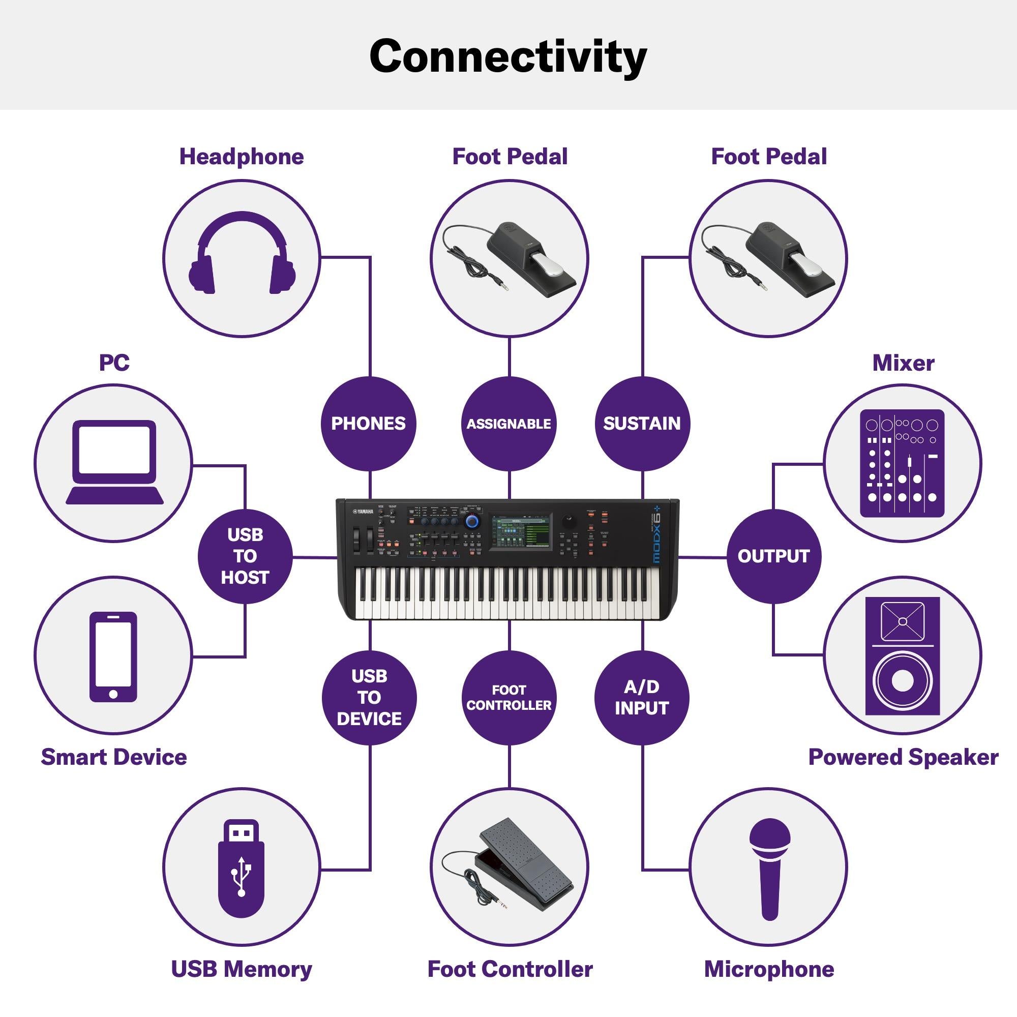 Yamaha MODX6+ memberikan kombinasi optimal antara portabilitas, performa, dan fleksibilitas dalam satu paket yang mudah dibawa. Keyboard ini sangat cocok untuk musisi yang membutuhkan kekuatan sintesis dan kontrol real-time dalam format yang kompak dan ringan.